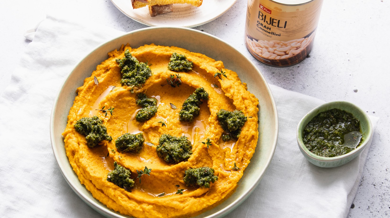 U multipraktik ili sjeckalicu stavite rashlađenu pečenu mrkvu, pečeni češnjak koji ste očistili od kore, maslinovo ulje te miksajte 30-ak sekundi. Dodajte dobro isprani bijeli grah. Posolite prstohvatom soli i miksajte dok niste dobili ujednačenu smjesu.